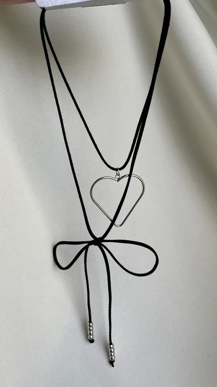 Choker gamuzado con dije corazón grande de acero blanco.
